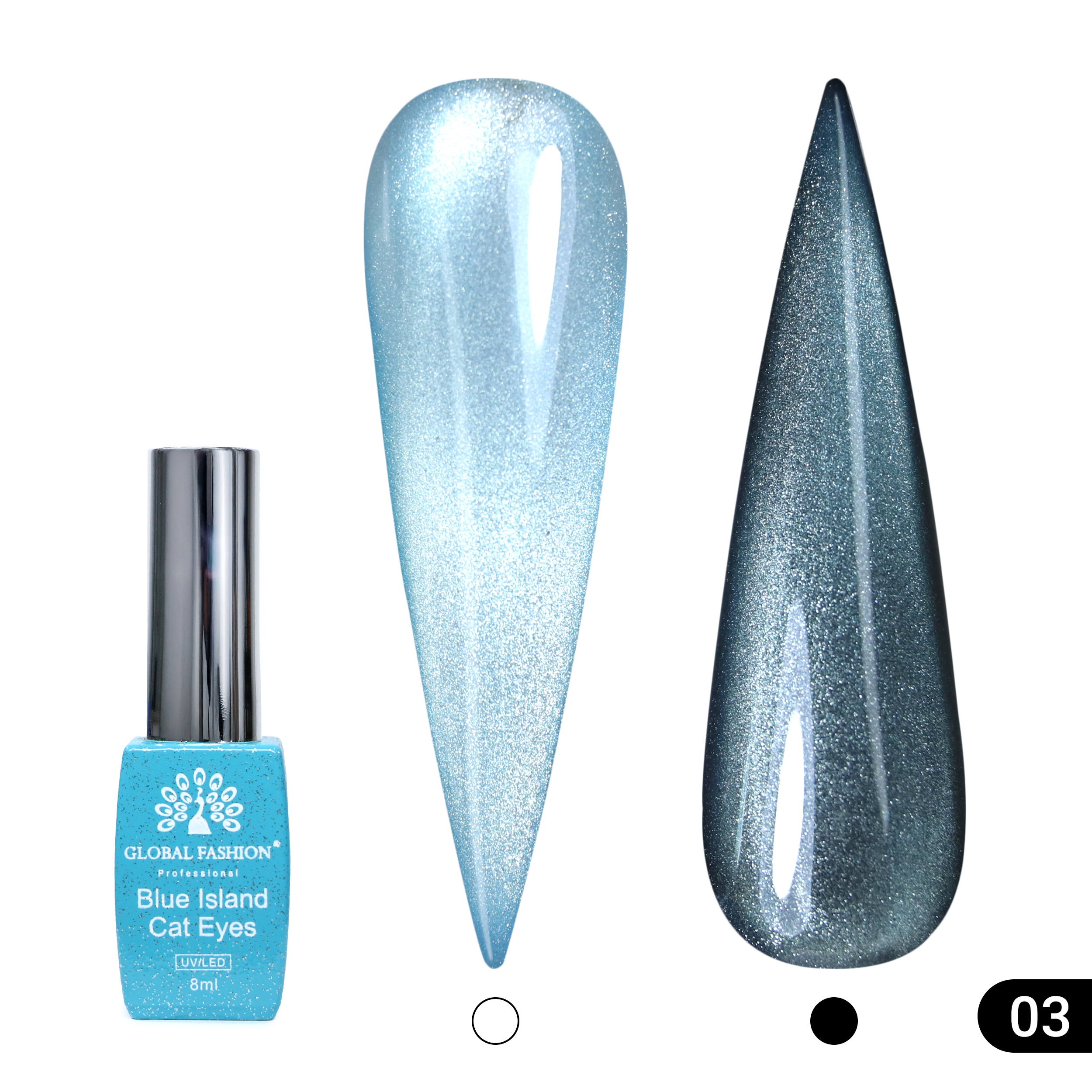Вся коллекция гель-лаков кошачий глаз Blue Island погружает в атмосферу глубокого океана, где солнечные лучи пробиваются сквозь воду, а острова окружены кристально чистыми пляжами с переливами голубого льда. Эта коллекция создана для nail-мастеров, которые ценят холодные оттенки, прозрачность и уникальные световые эффекты, способные вдохнуть жизнь в каждый маникюр.