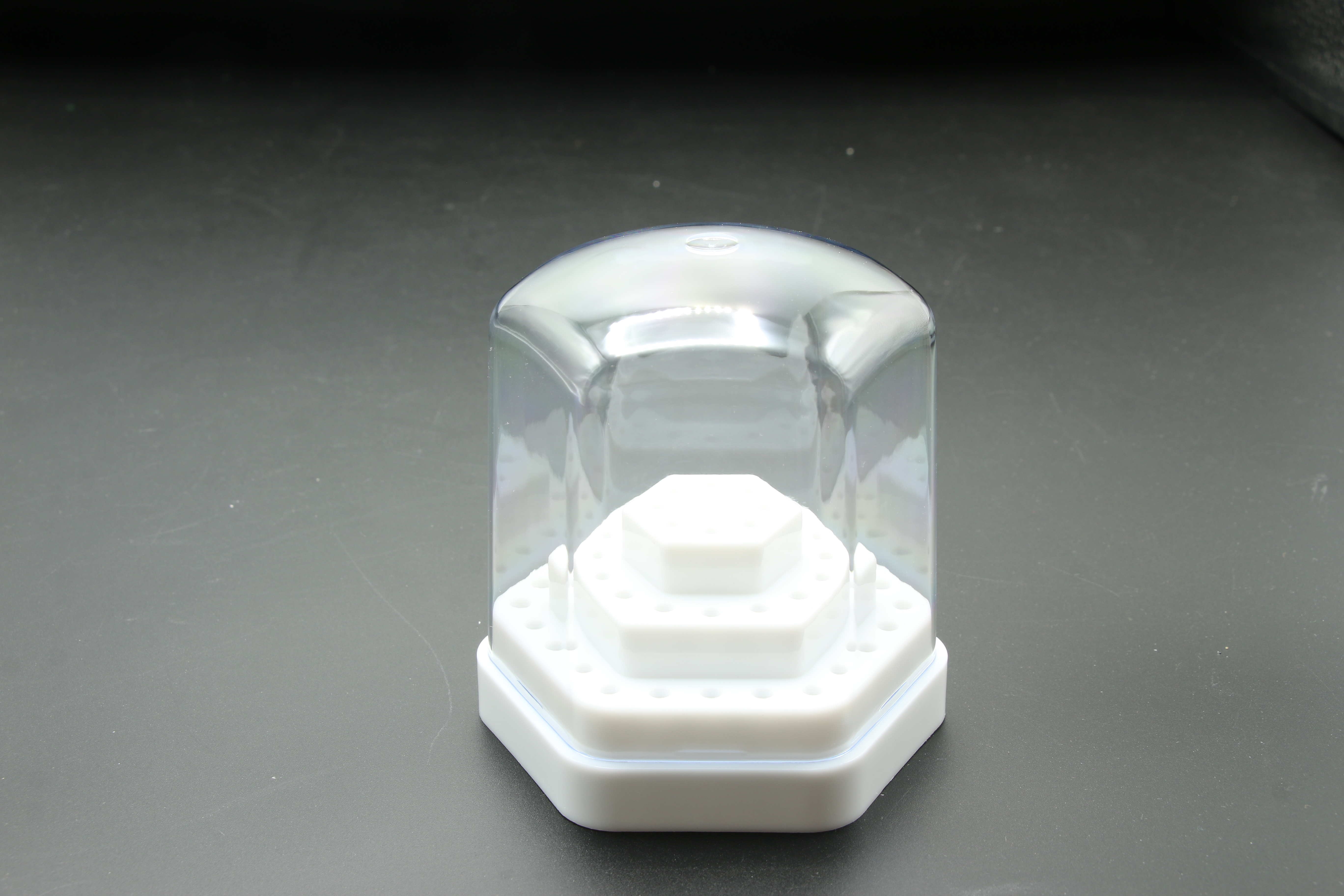 Підставка для фрез з кришкою L-116 - зручний органайзер для зберігання та транспортування фрез, борів та насадок для манікюру. Виготовлена із міцного пластику, вона надійно захищає інструменти від пилу, вологи та механічних пошкоджень. Прозора кришка дозволяє бачити вміст, а щільне закриття запобігає випадковому відкриття.