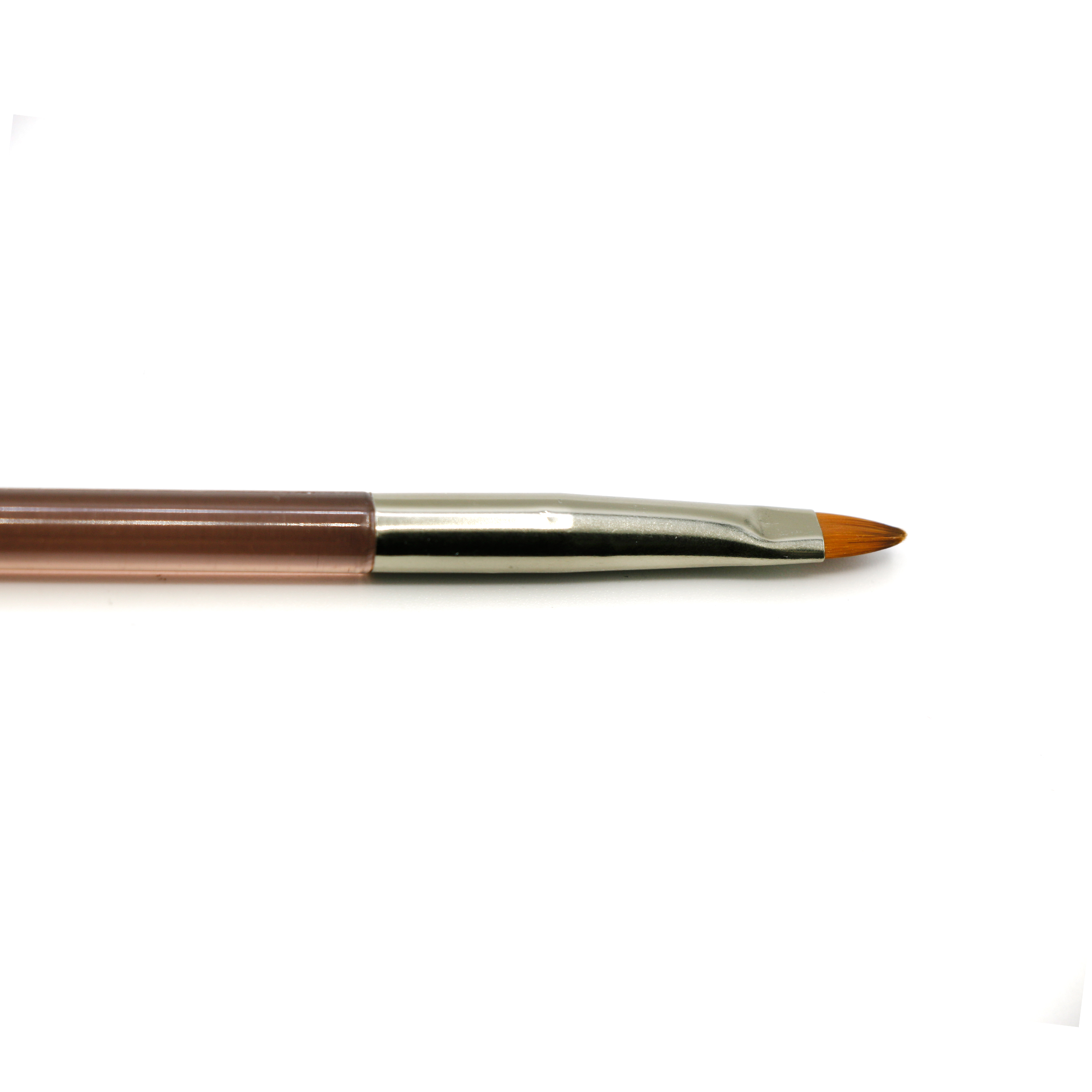 З одного боку пензлик короткий, овальної форми, що дозволяє викласти потрібну кількість матеріалу і правильно розподілити його по нігтьовій пластині.