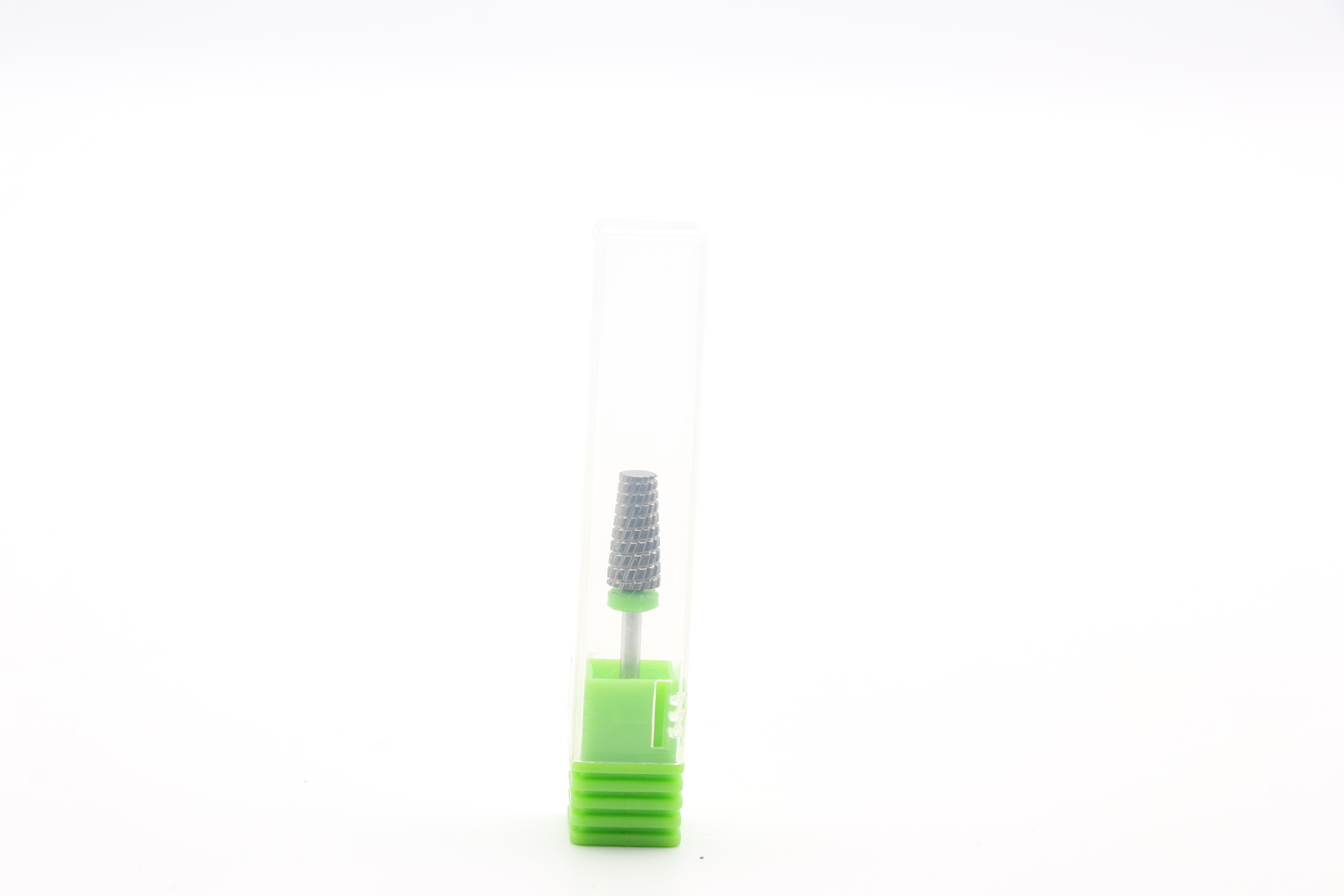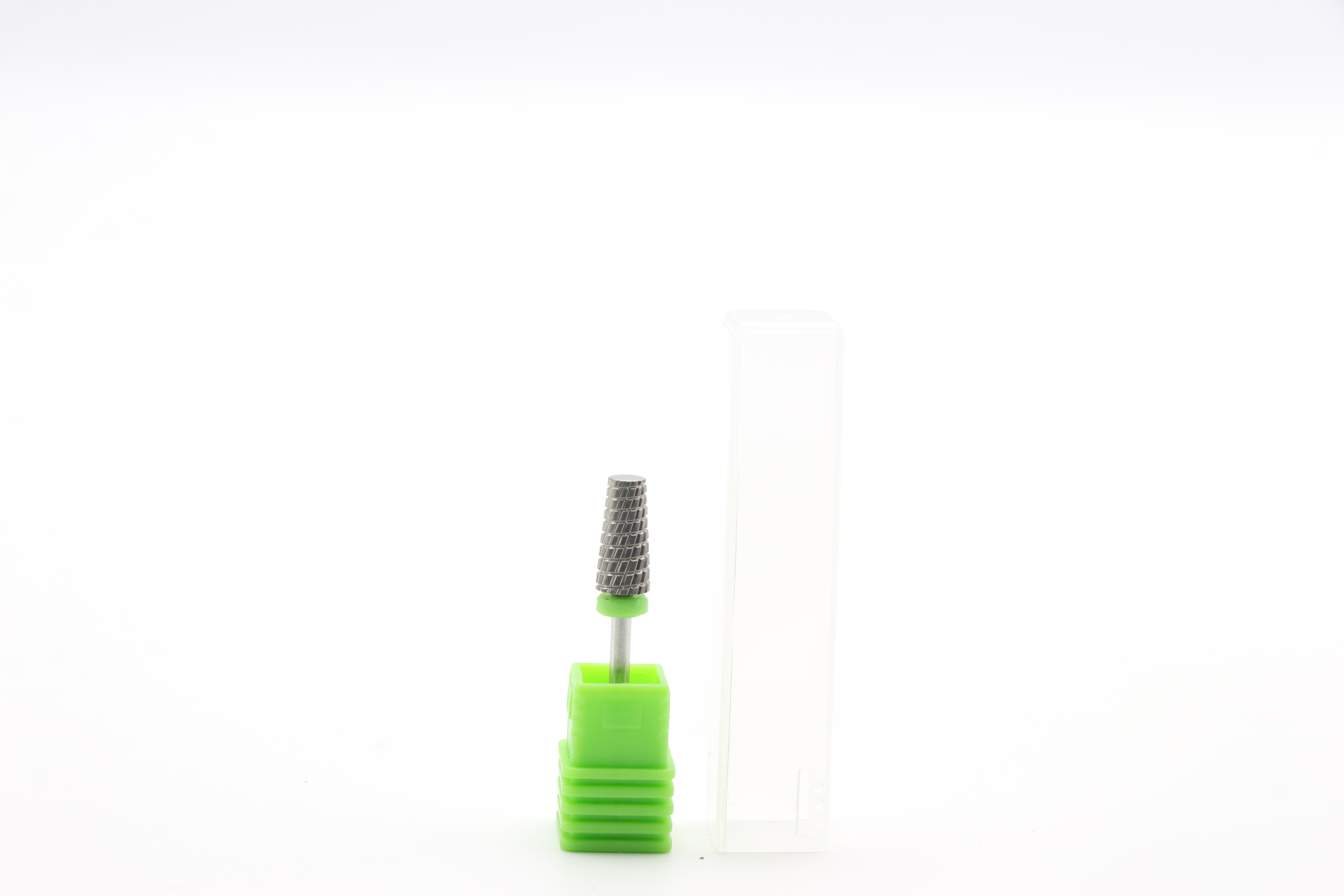 У комплекті йде зручна коробочка для насадки. Термін експлуатації та ефективність твердосплавних насадок набагато перевищує термін експлуатації насадок з алмазним напиленням. Вона не іржавіє, піддається дезінфекції та стерилізації.