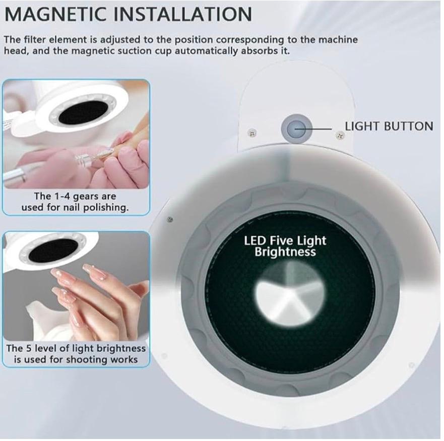 Стильний та універсальний дизайн, що ідеально вписується в будь-який офіс або робочий простір. Надійна та потужна конструкція ефективно справляється з пилом будь-якого типу та частинками різного розміру, забезпечуючи бездоганну чистоту робочого місця. Кріпиться до столу за допомогою міцного затиску, а кронштейн, що регулюється, дозволяє легко налаштувати оптимальний кут нахилу для комфортної роботи. Вбудоване підсвічування з трьома режимами: біле світло, тепле жовте світло, комбіноване біло-жовте світло. Освітлення управляється зручною кнопкою на корпусі лампи: короткий натиск перемикає режими світла, а тривале утримання регулює яскравість. Крім того, передбачена функція пам'яті – лампа зберігає вибрані налаштування та автоматично застосовує їх при наступному увімкненні. У комплекті йдуть два змінні фільтри. Фільтр надійно фіксується завдяки вбудованому магніту.