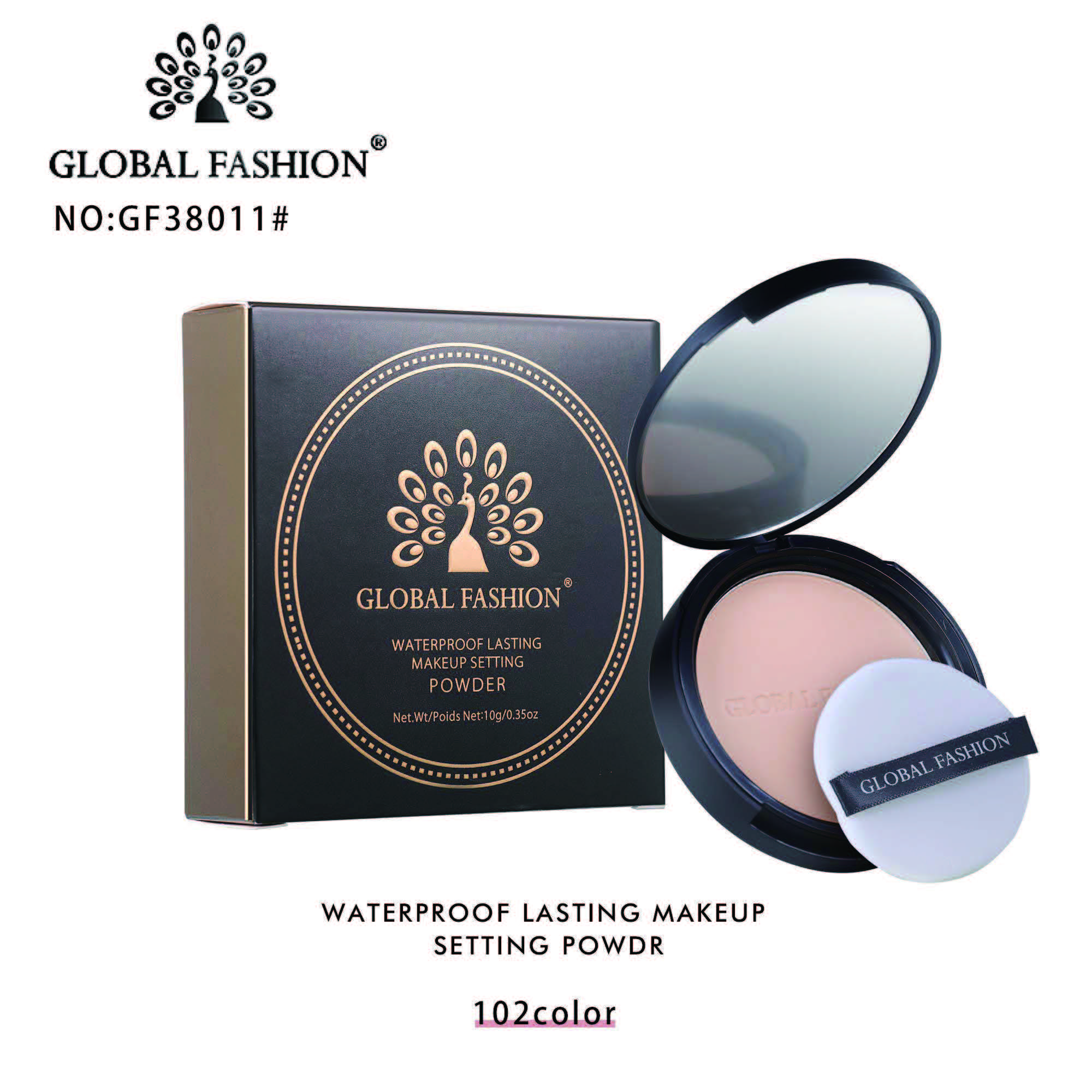 Водостойкая пудра Global Fashion – GF38011, оттенок #102 – Матовый, ровный и безупречный цвет лица на весь день