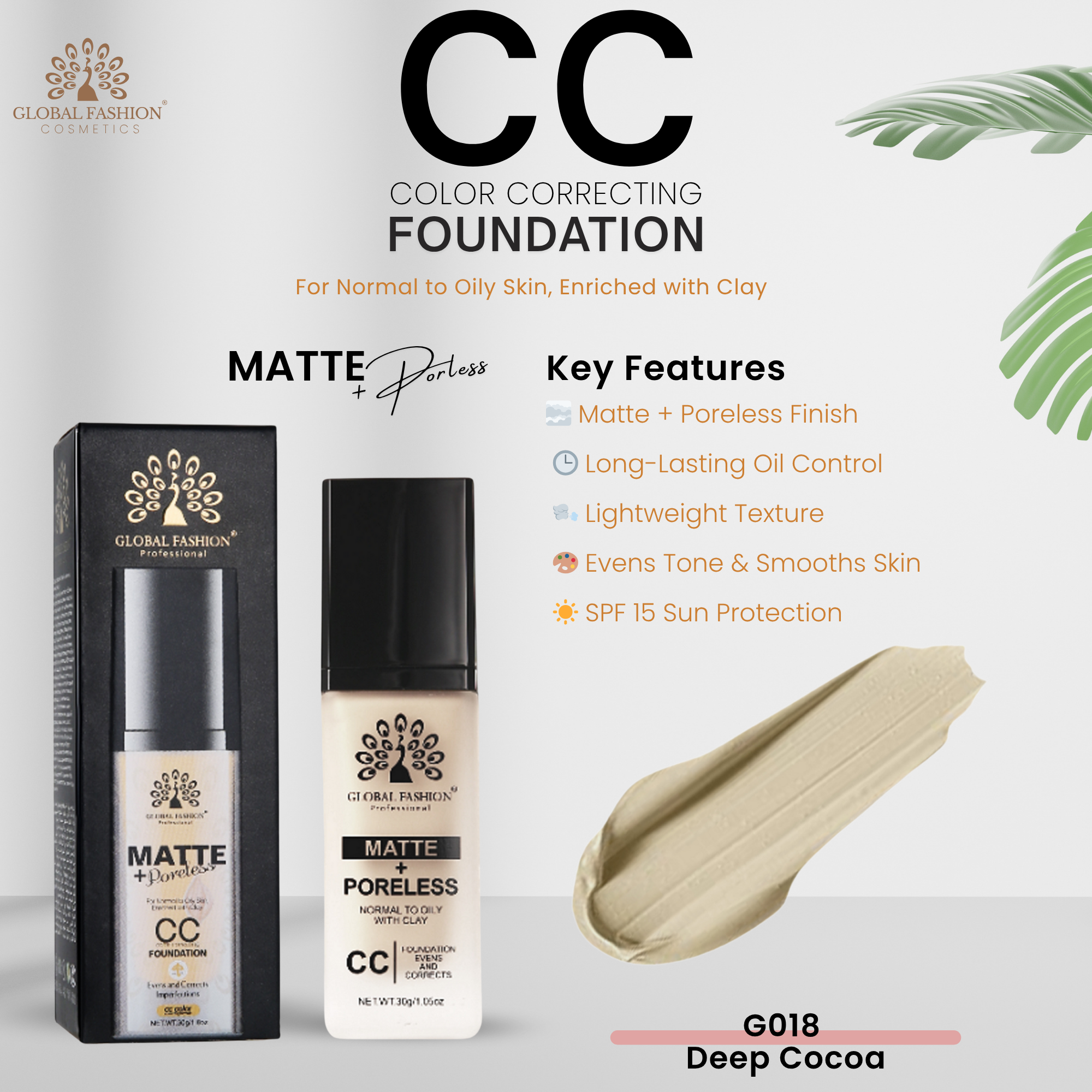 CC Foundation Matte+Poreless, Global Fashion, G018, Deep Cocoa