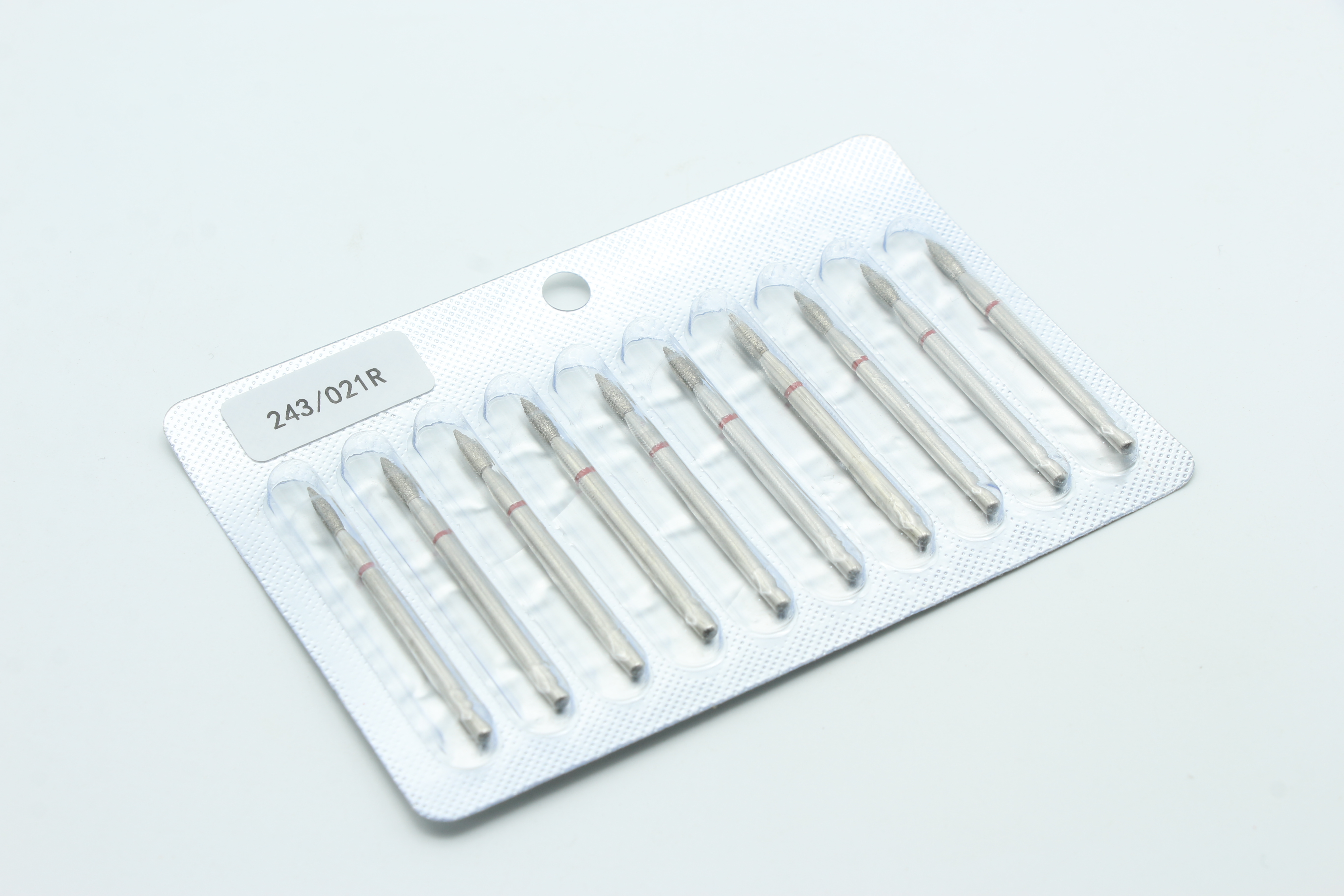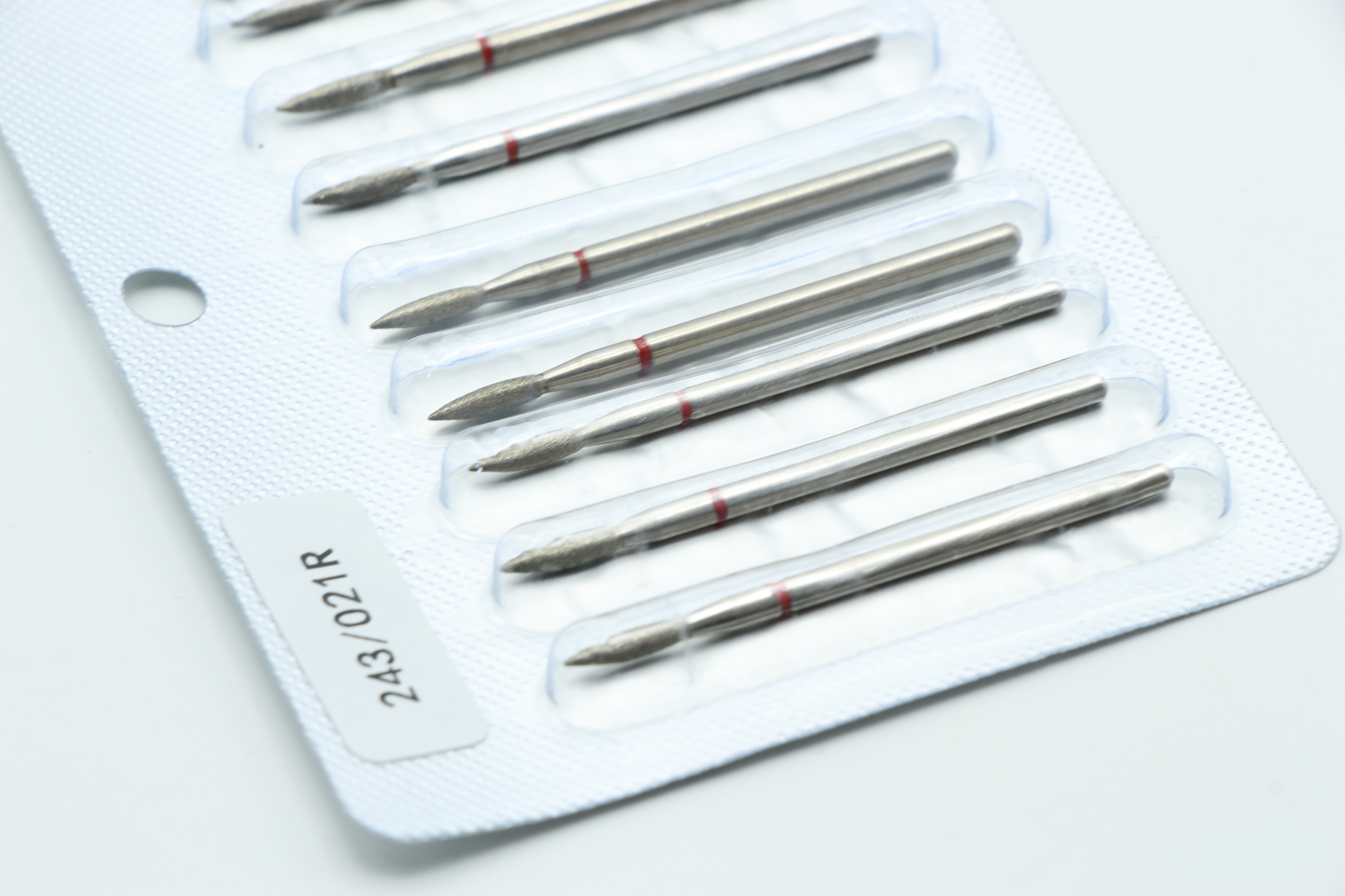 Алмазная насадка 243/021R в форме «пламя» с красной лентой (мелкозернистая) специально разработана для деликатной и чрезвычайно точной работы в области кутикулы. Это незаменимый инструмент в профессиональном маникюре, идеально подходящий для приподнимания кутикулы, очистки боковых борозд и завершения обработки кожи без риска повреждения.