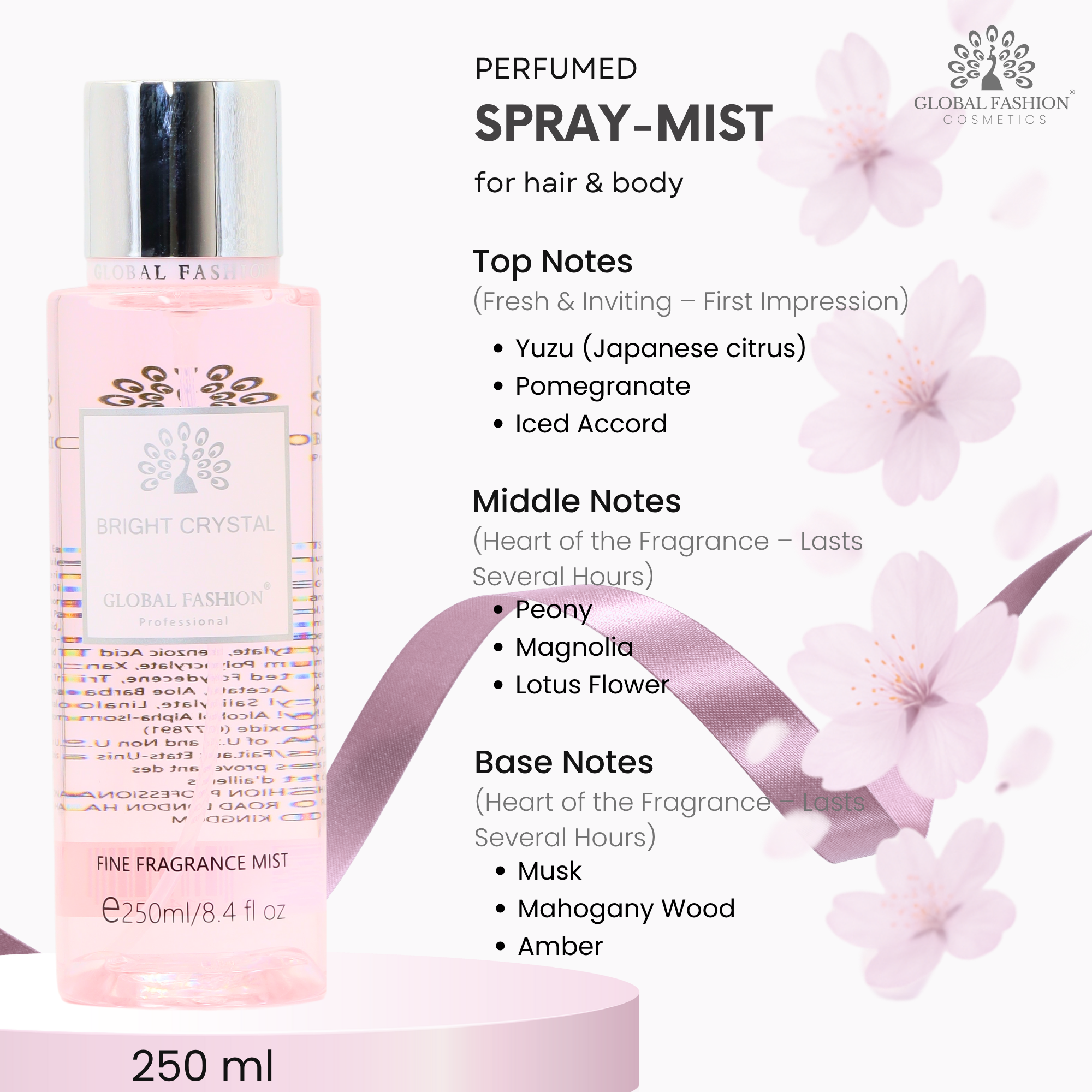 🌷 Спрей для тела Global Fashion Bright Crystal – это воплощение современной элегантности: свежий, изысканный и сияющий. Идеальный выбор для женщин, которые ценят естественную красоту, нежность и аромат, вселяющий уверенность и чистую женственность.