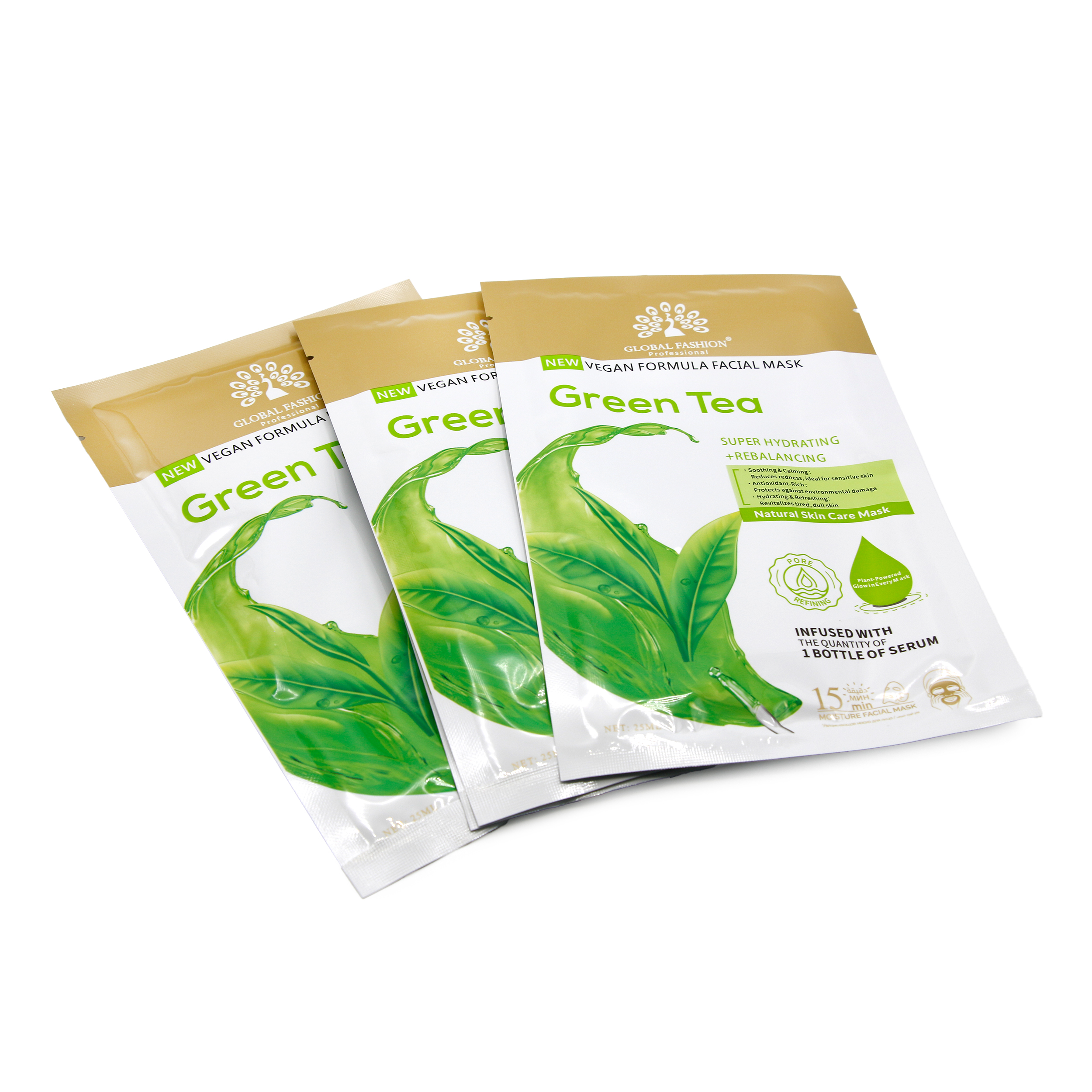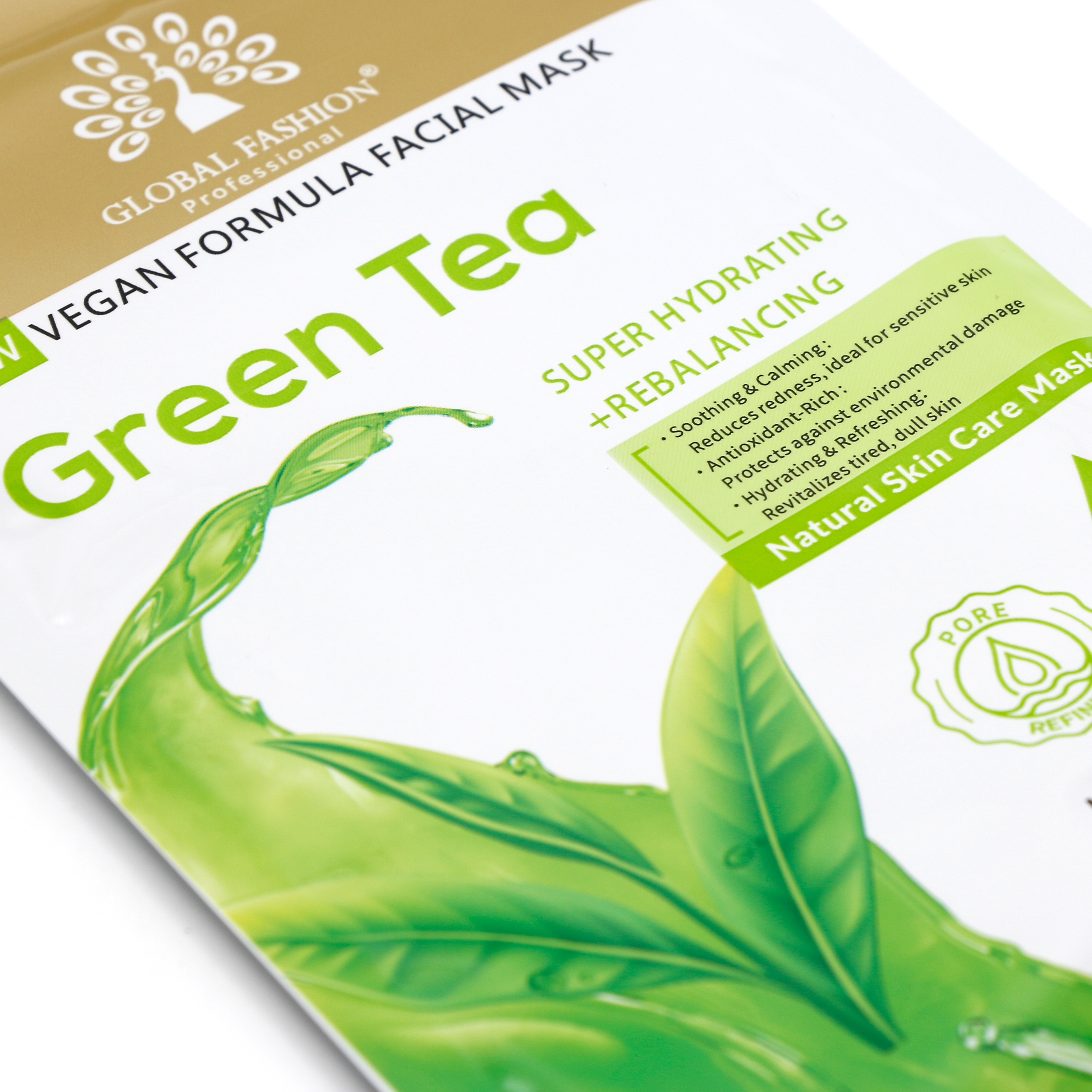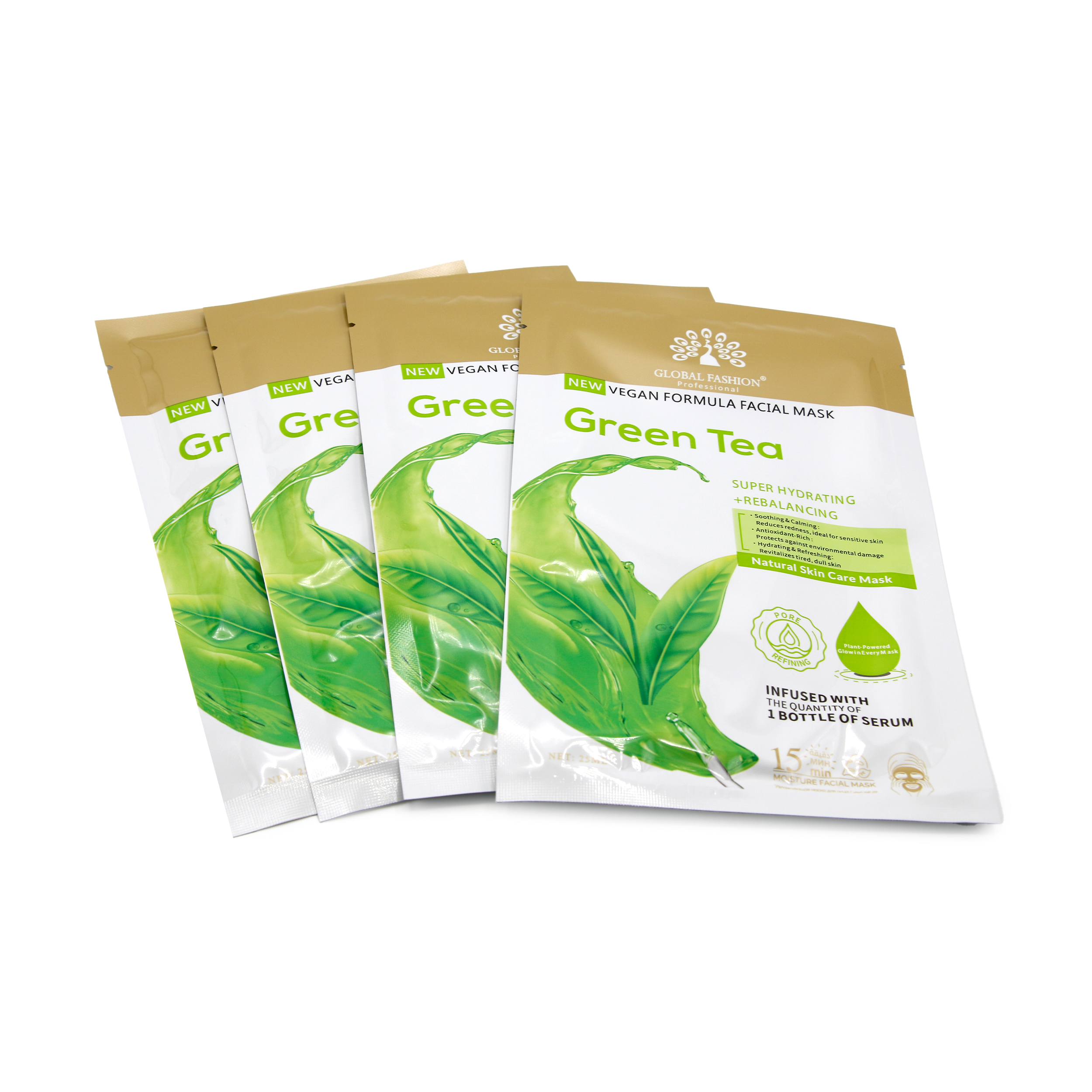 Маска для лица Global Fashion, зелёный чай, супер увлажняющий и балансирующий, 25 мл, 10 шт