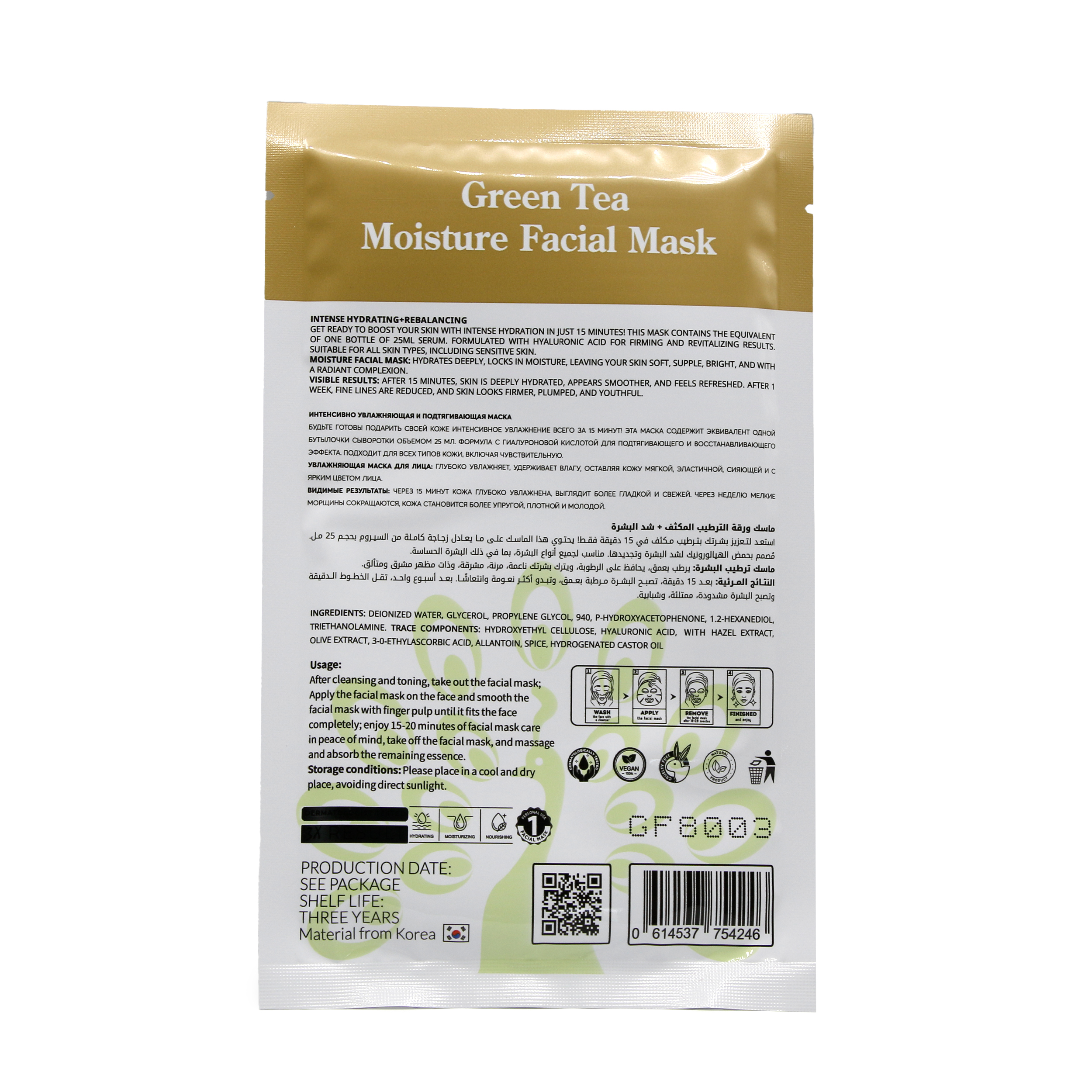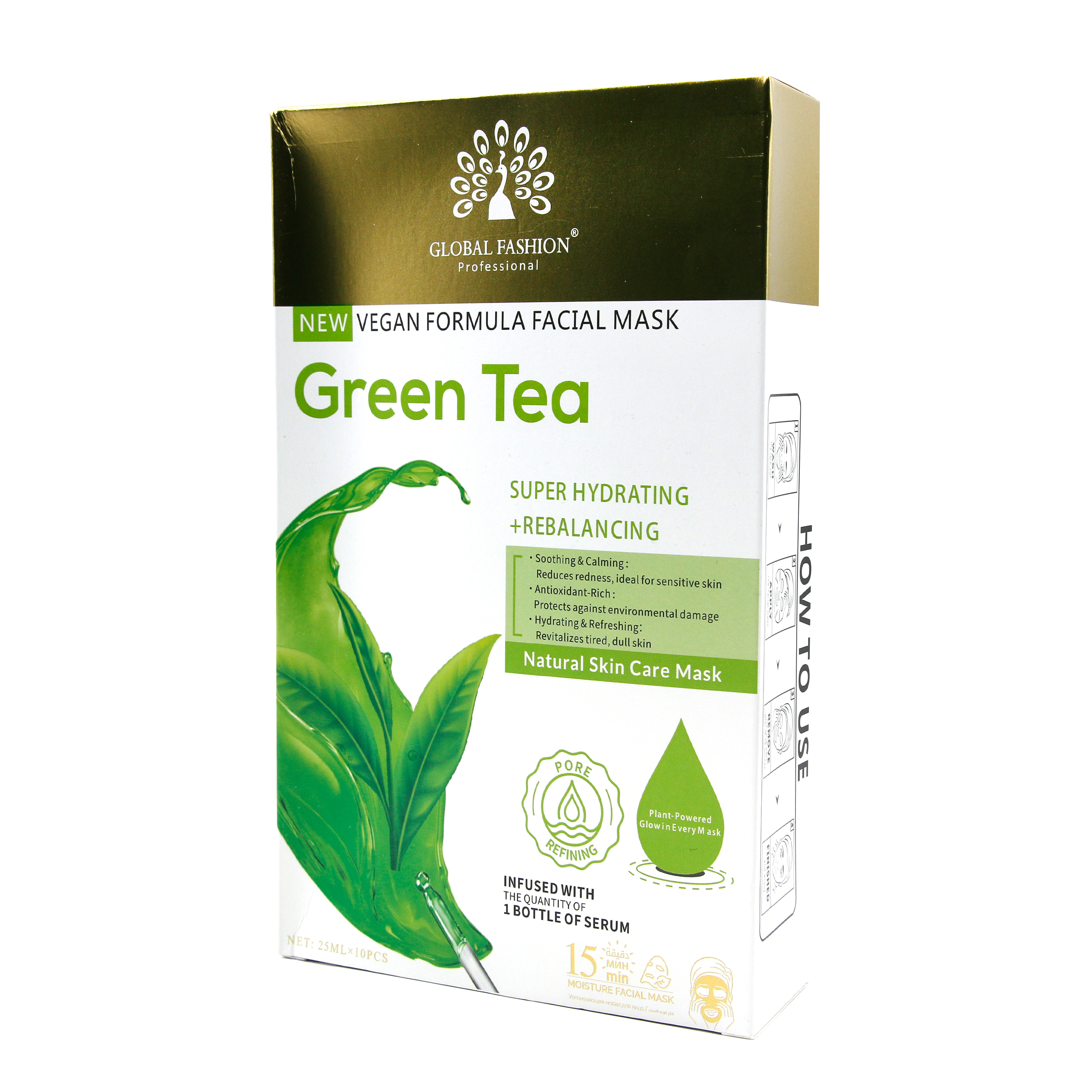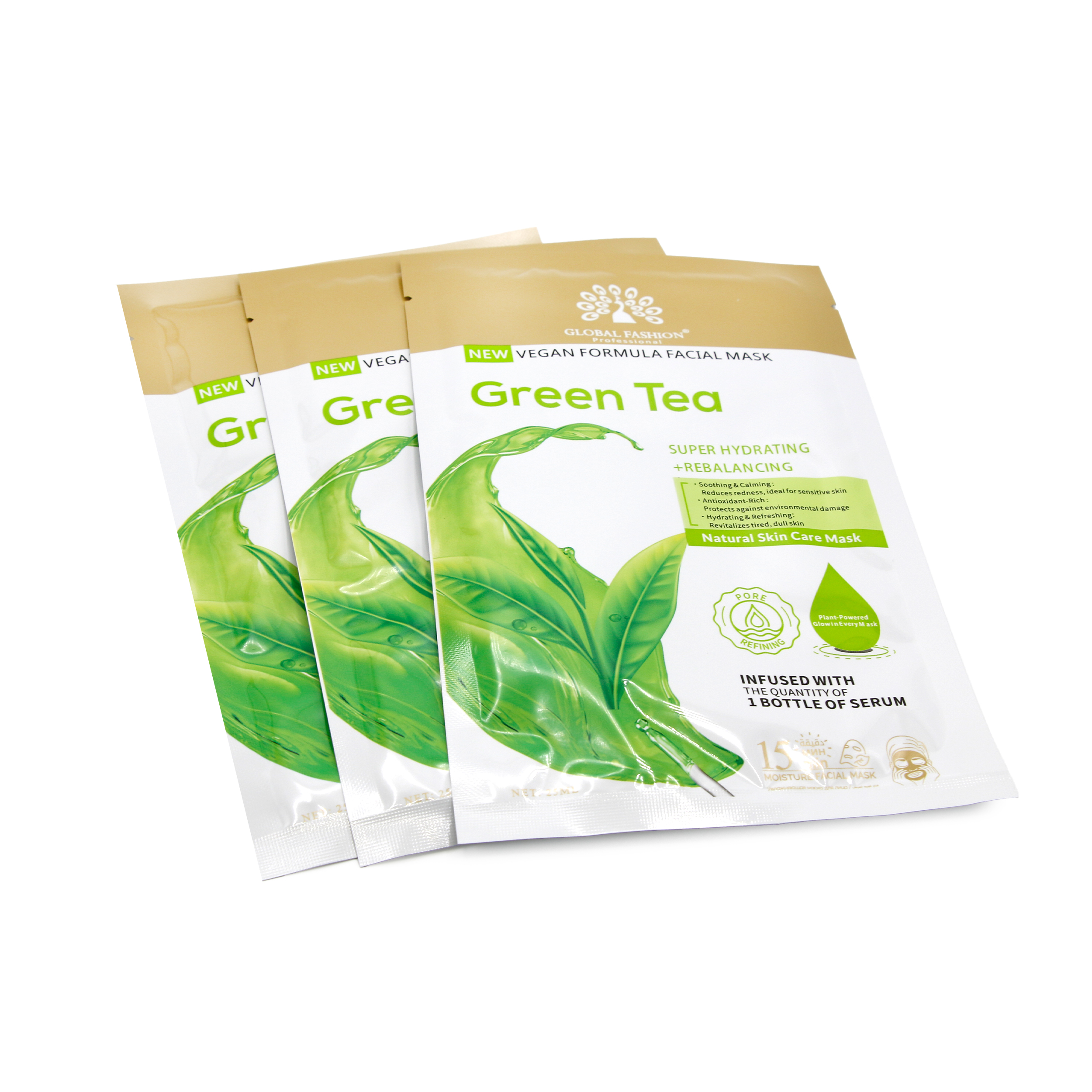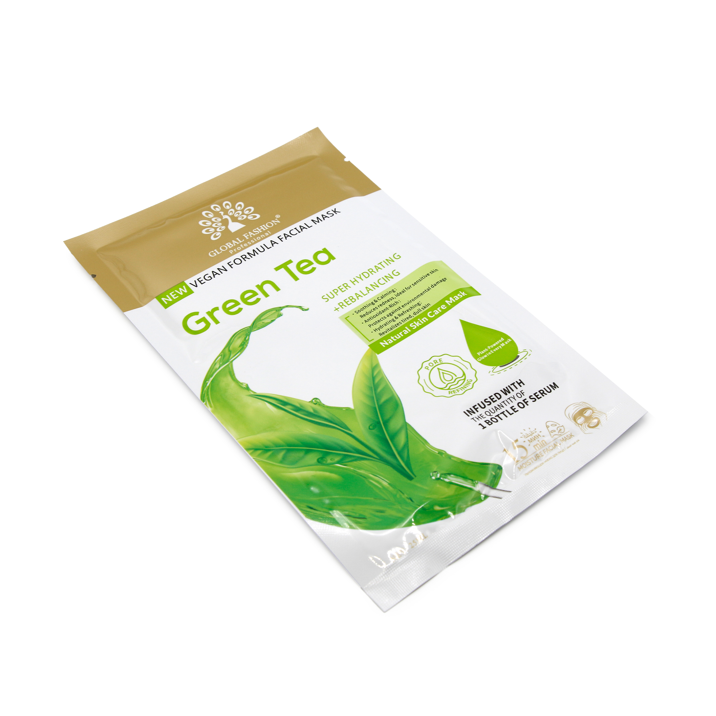 Маска для лица Global Fashion, зелёный чай, супер увлажняющий и балансирующий, 25 мл, 10 шт