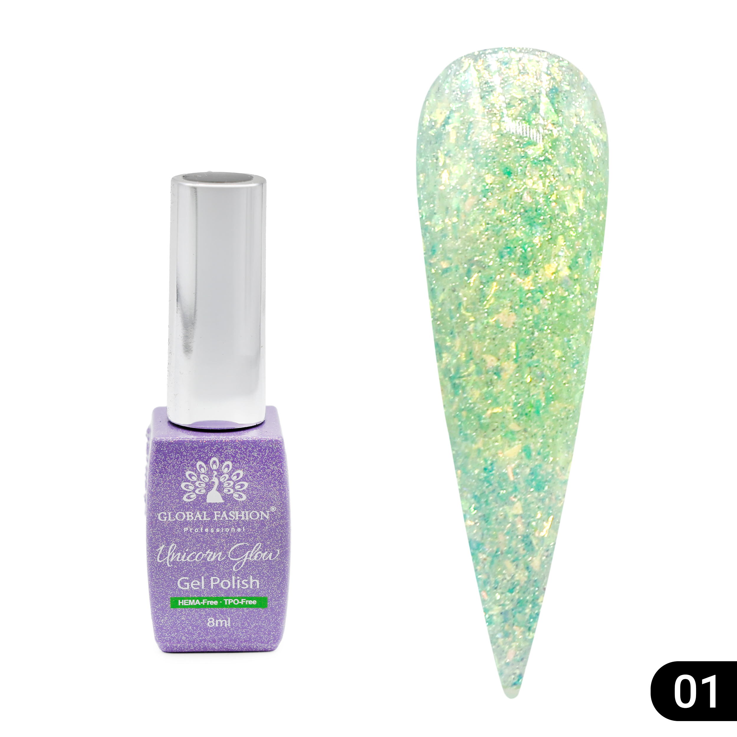 Полуперманентный гель лак для ногтей Unicorn Glow от Global Fashion – это профессиональный гель лак для ногтей объемом 8 мл с переливчатым эффектом и разноцветными бликами, созданный для яркого, игривого и современного маникюра. Специальные пигменты создают эффект «единорога» с едва заметными цветовыми изменениями в зависимости от освещения и угла зрения.