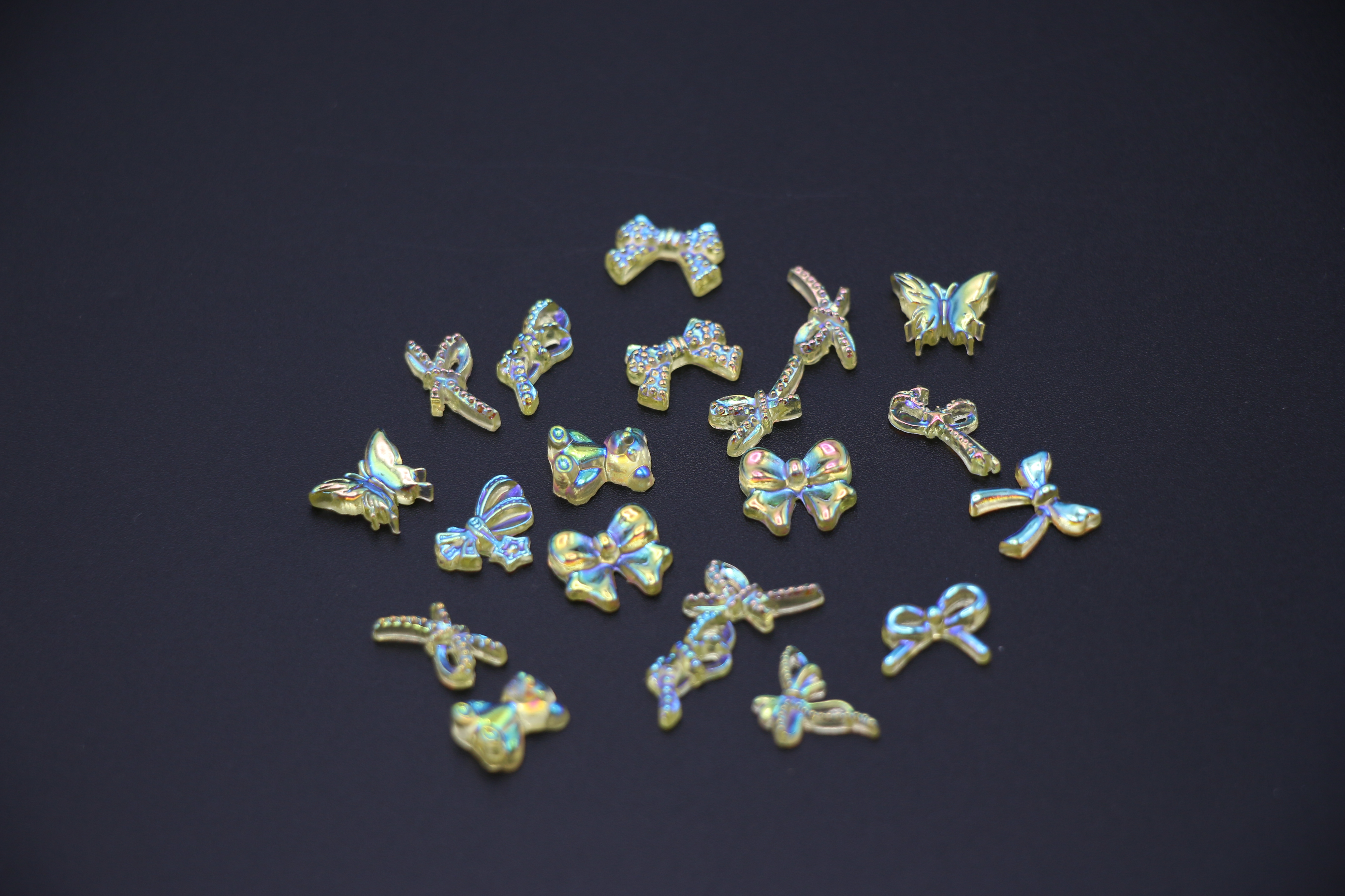 Объемные бантики для декора ногтей 10х10 мм лимоные, 20 штук
