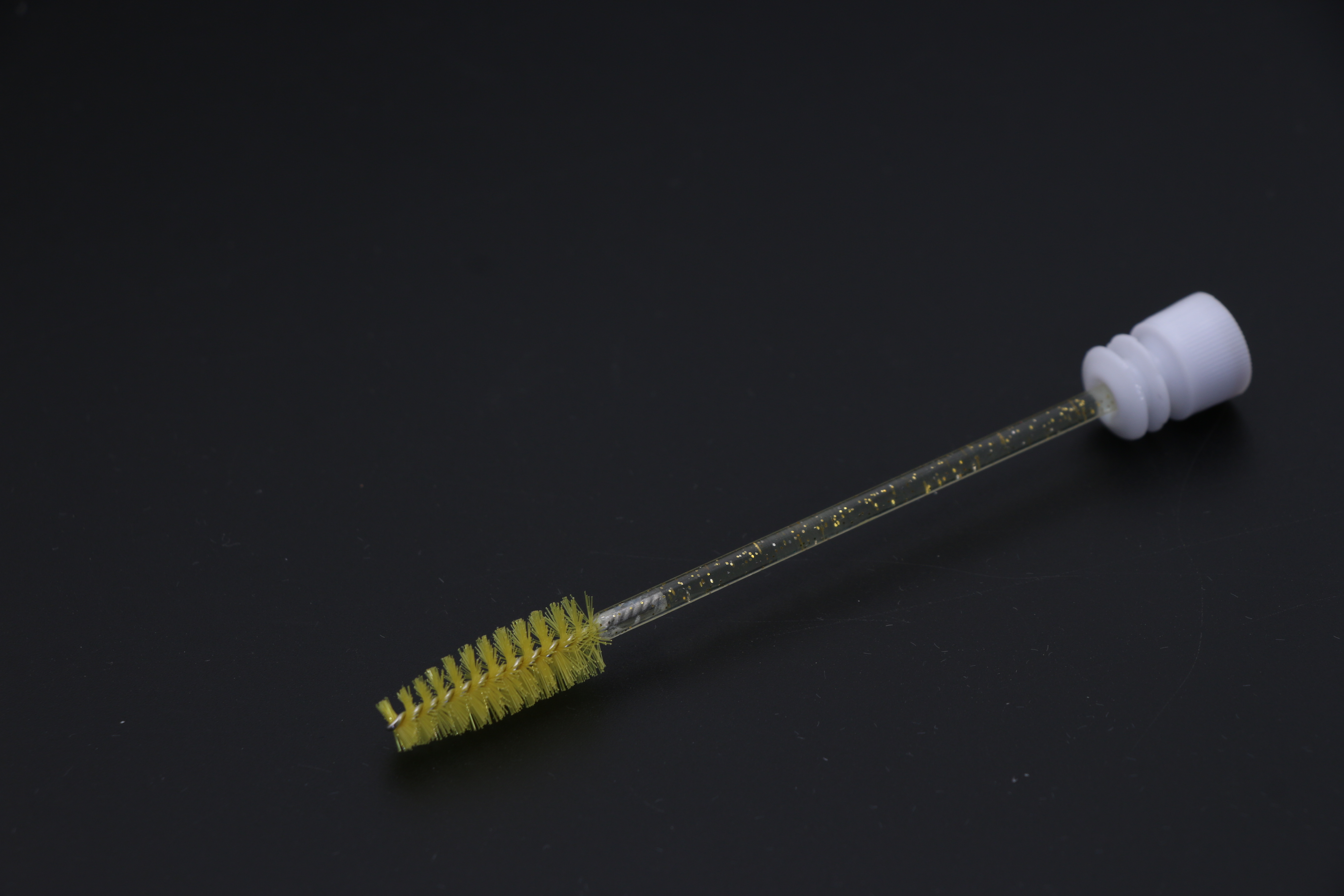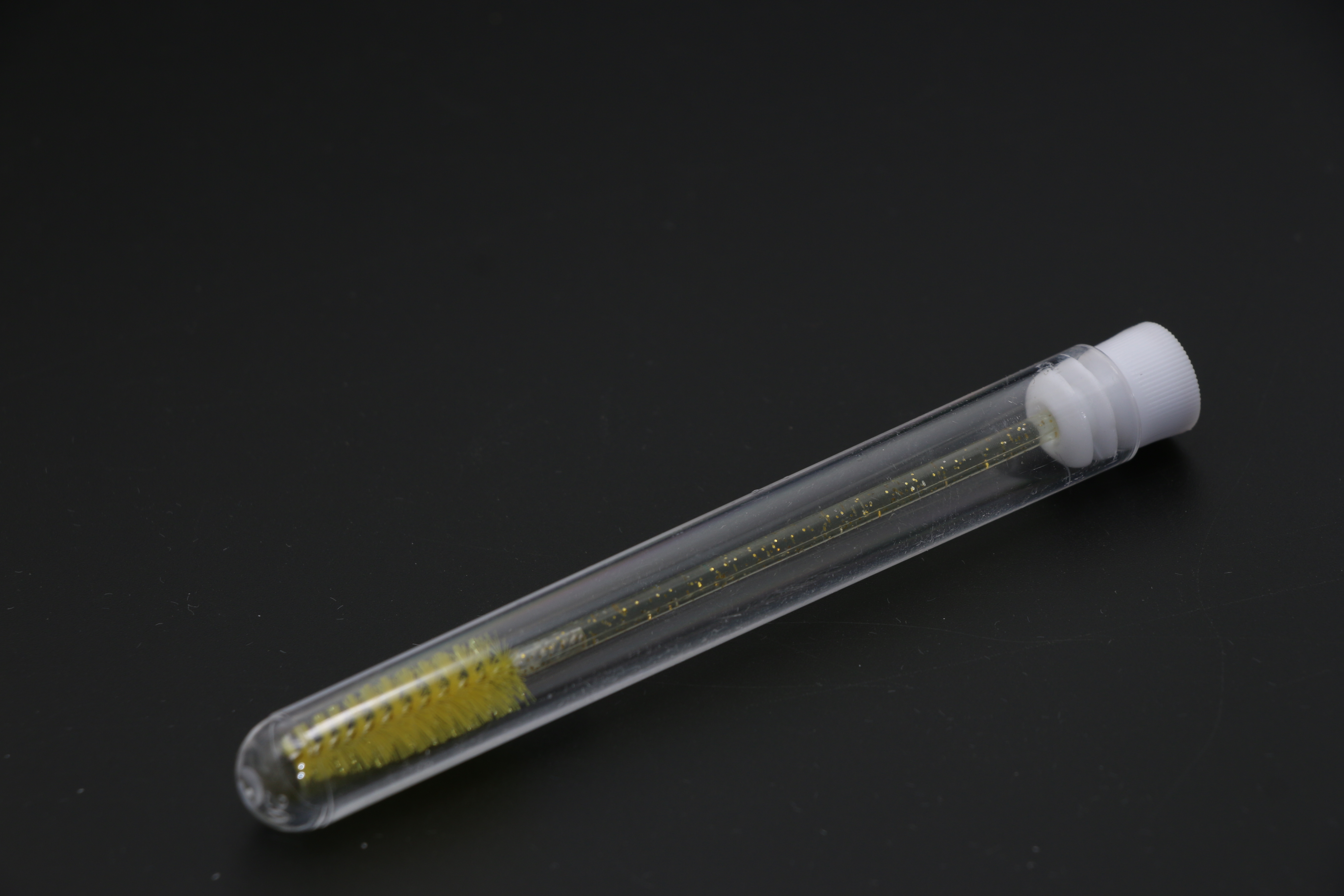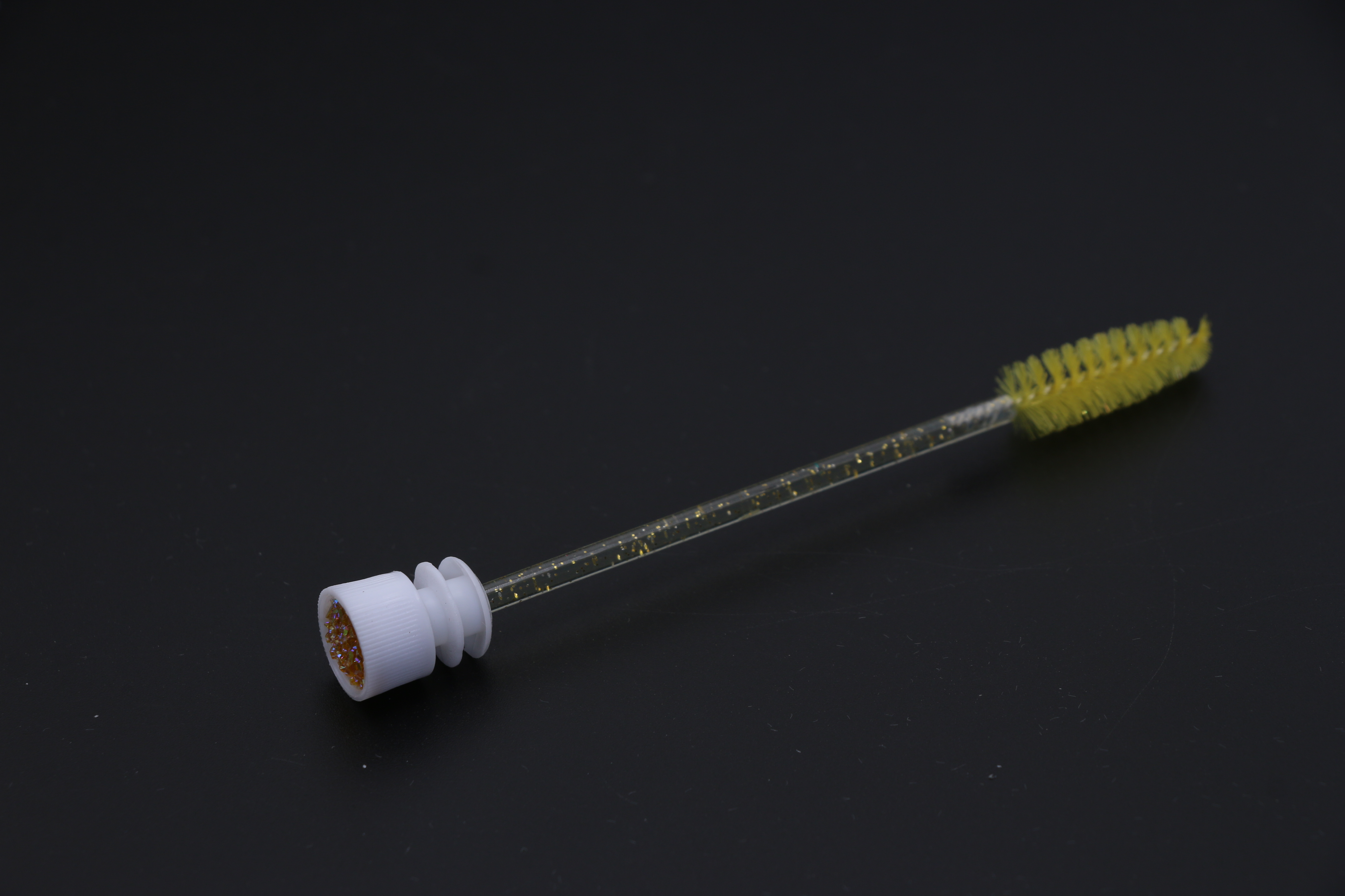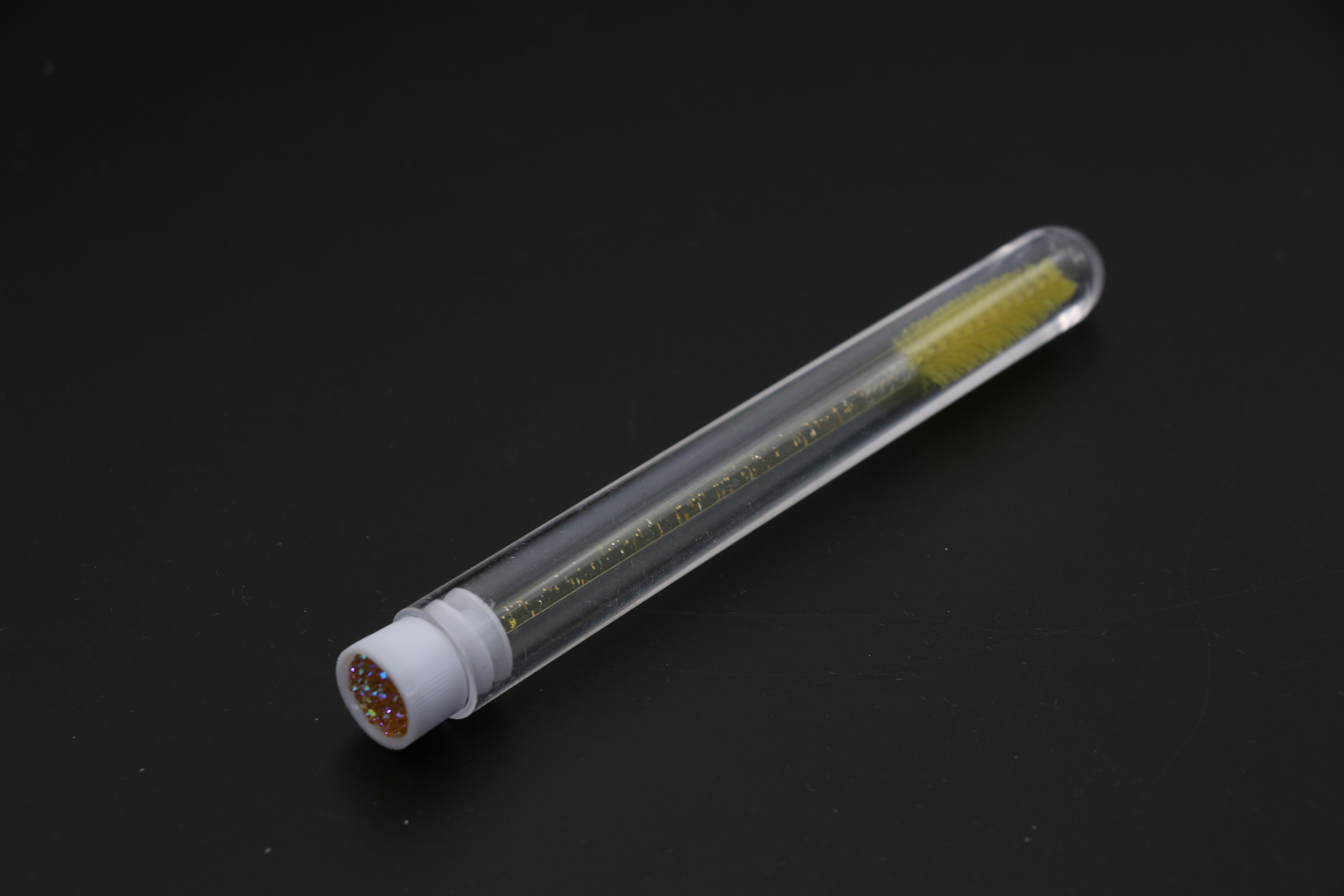 Щеточка в тубусе нейлоновая для ресниц и бровей с блесткам, желтая