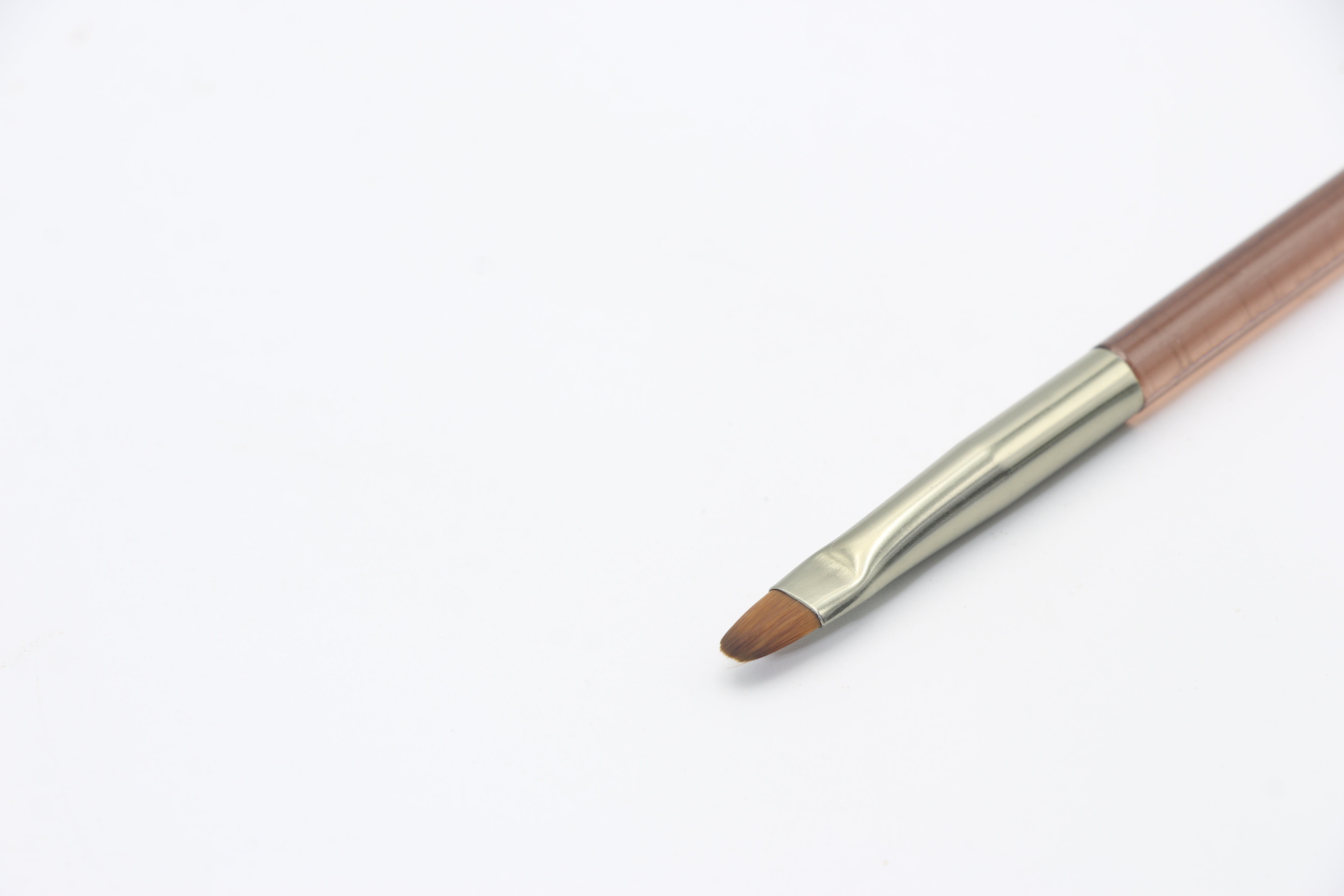 С одной стороны кисточка короткая, овальной формы, что позволяет выложить нужное количество материала и правильно распределить его по ногтевой пластине.