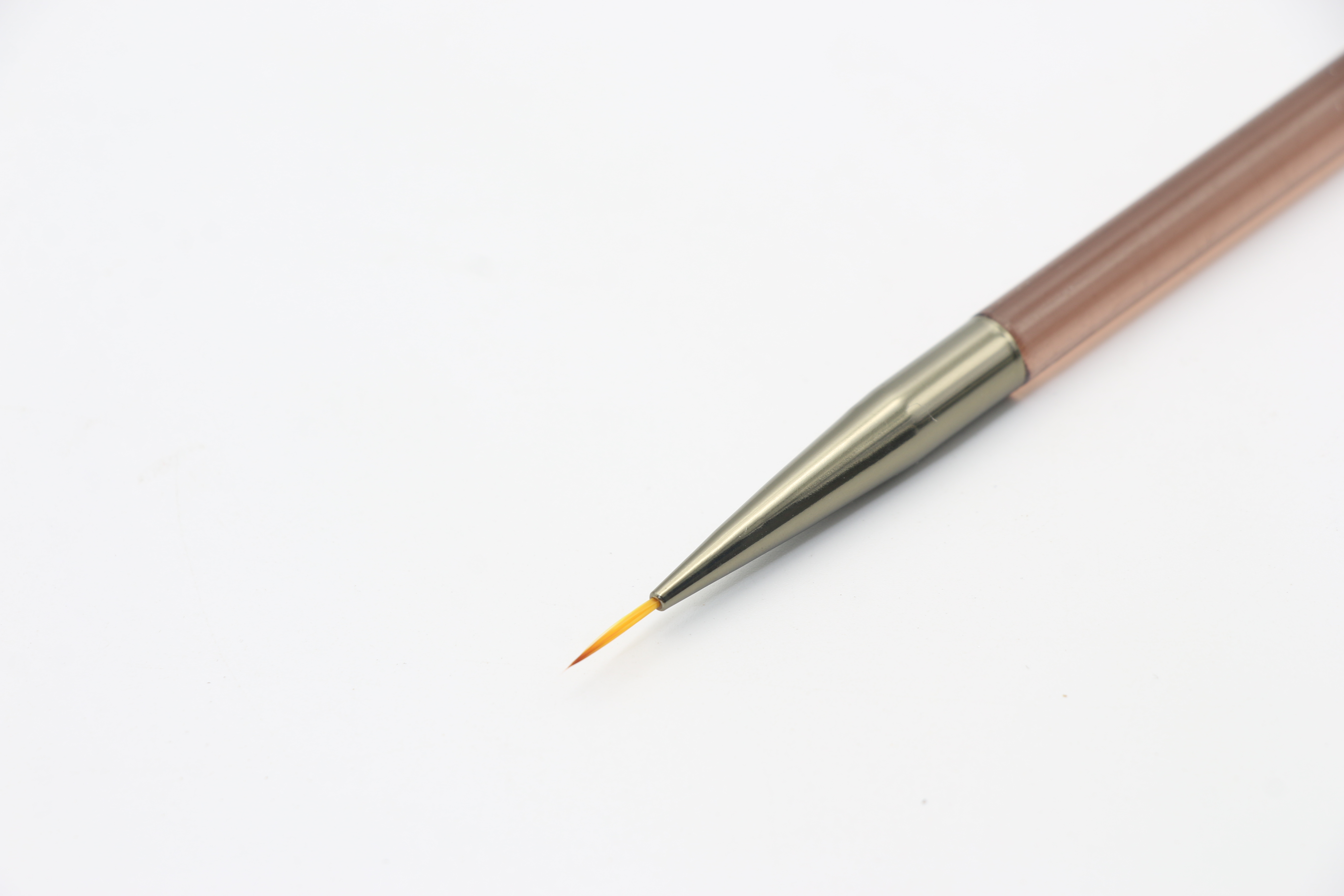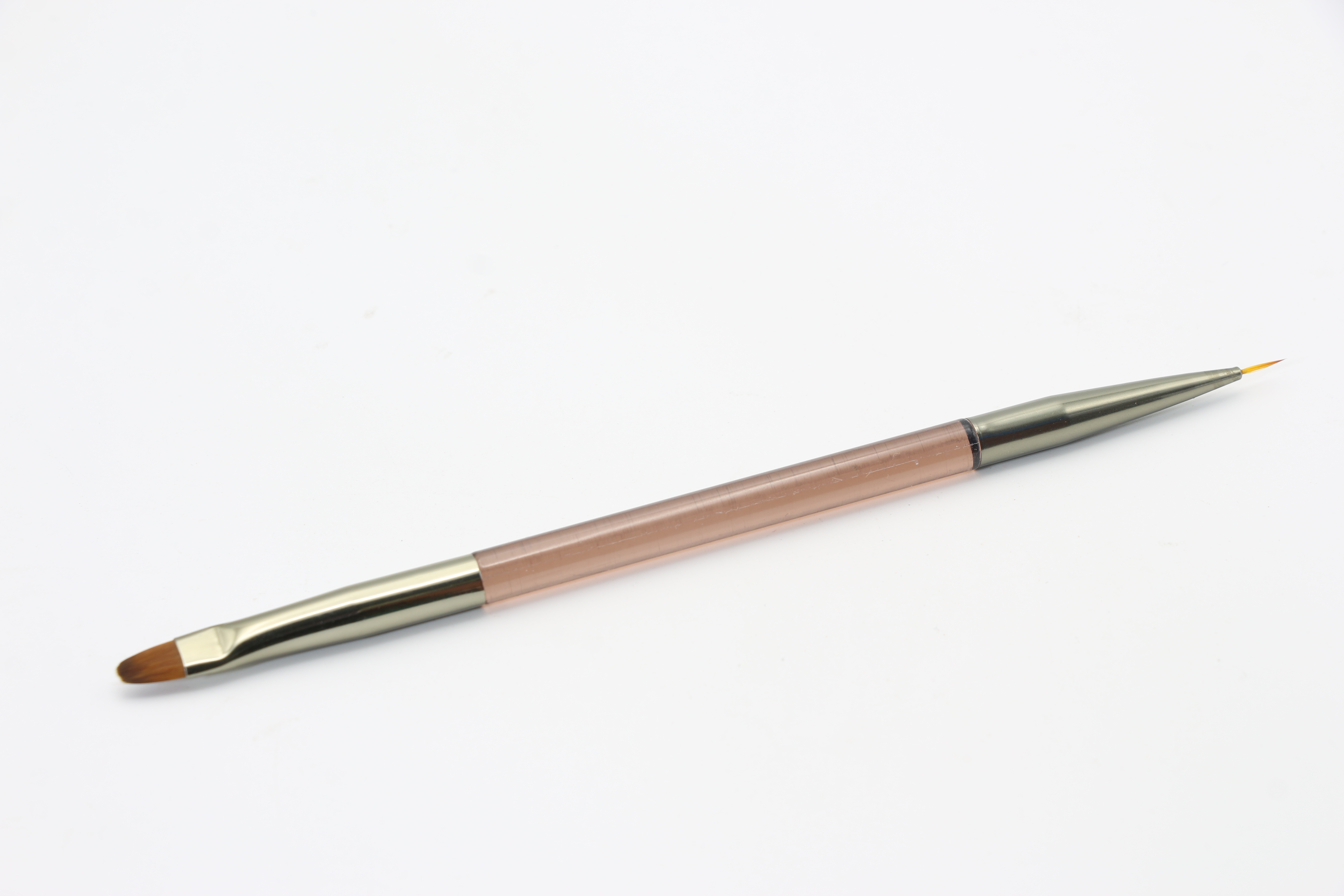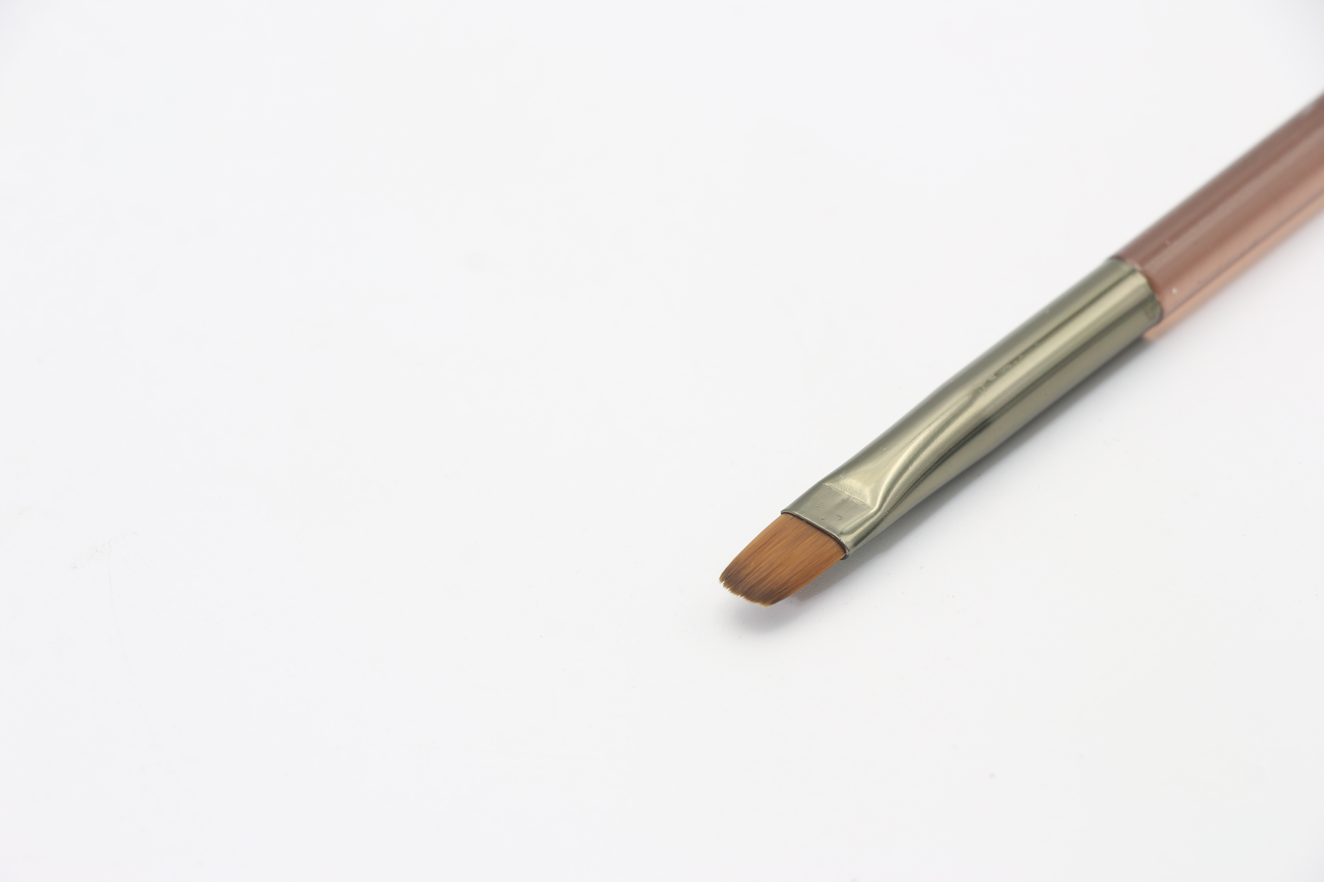 С одной стороны кисточка короткая, овальной формы, что позволяет выложить нужное количество материала и правильно распределить его по ногтевой пластине.